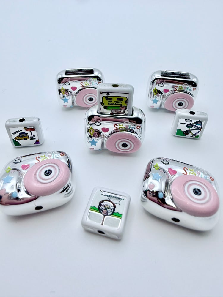 Shake it, shake it like a polaroid picture!! One of the most unique and Kawaii bead! Camera bead is separate from the photo bead and can be used together or separately. You will surely add that wow factor to any keychain! Bead width is almost an inch and the hole is top to bottom.