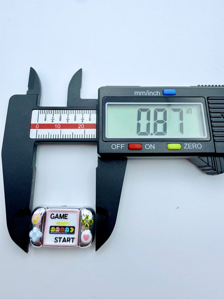Game start! Calling all gamers and Pac-Man fans. These beads are so cute and would make the best keychains or pen toppers since the hole is up top to bottom. Bead width is a little shy of an inch and super shiny!